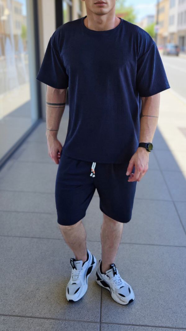 Будьте первым, кто оставил отзыв на “Костюм мужской: Футболка свободного кроя с округлым вырезом + шорты на резинке синий”