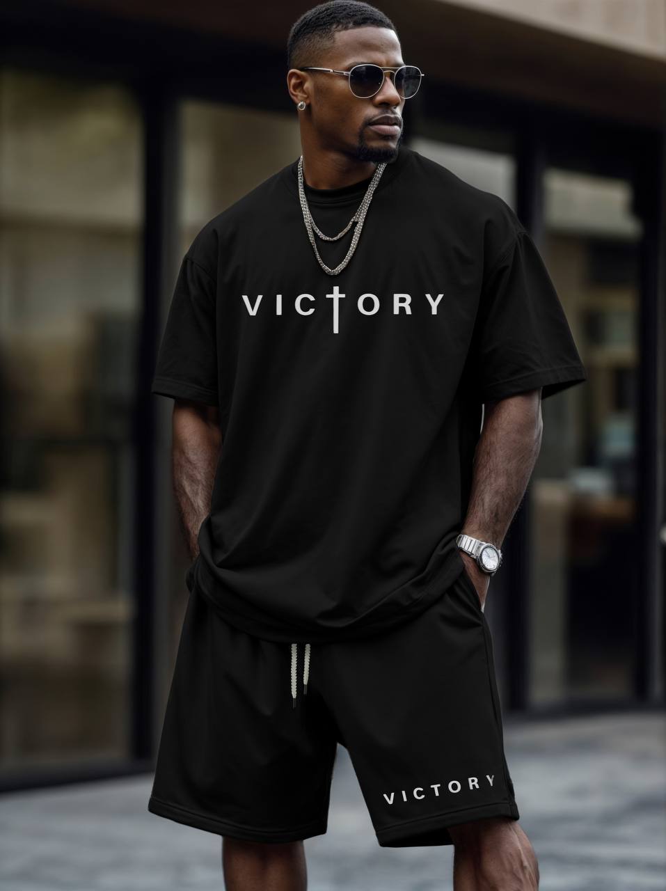 ✨Футболка свободного кроя с округлым вырезом + шорты на резинке со шнурком и боковыми карманами. Дополнены стильной наклейкой «Victory».