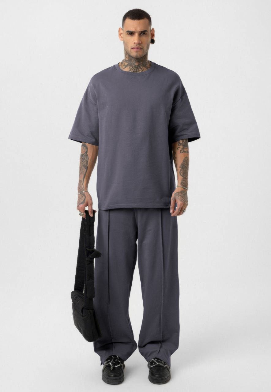 Костюм мужской: Футболка свободного кроя+широкие брюки с высокой талией серый