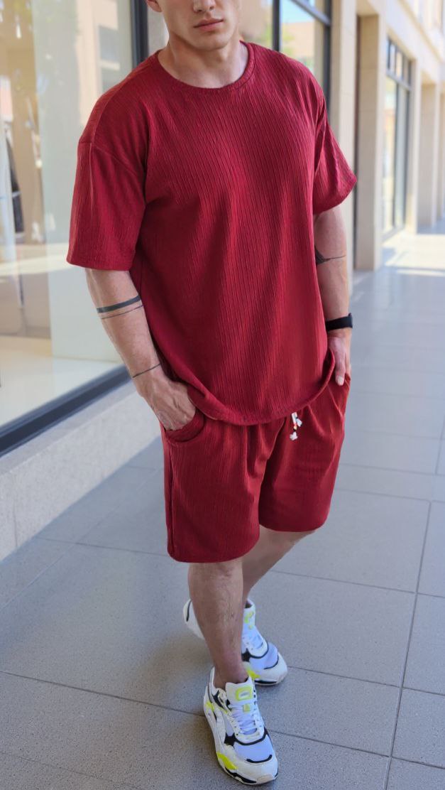 Костюм мужской: Футболка свободного кроя с округлым вырезом + шорты на резинке красный