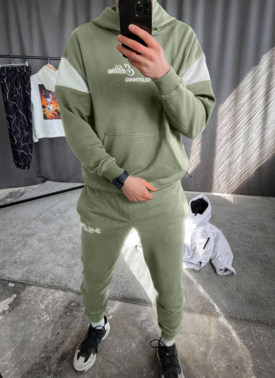 Костюм мужской Худи карман-кенгуру+брюки с боковыми карманами оливка