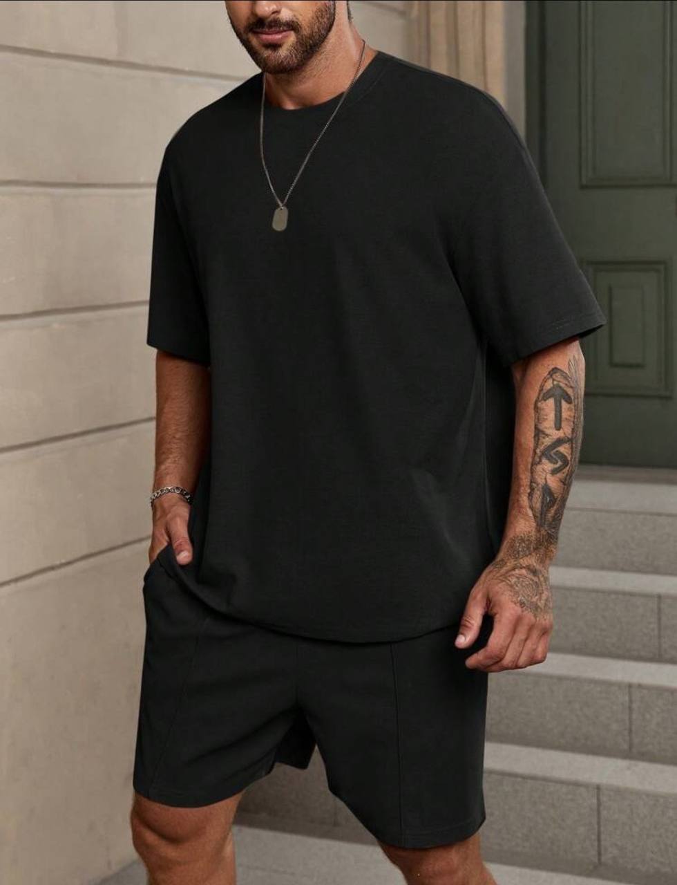 Головна » Магазин » ОДЕЖДА » МУЖСКИЕ КОСТЮМЫ » Костюм мужской на лето: футболка+шорты черный