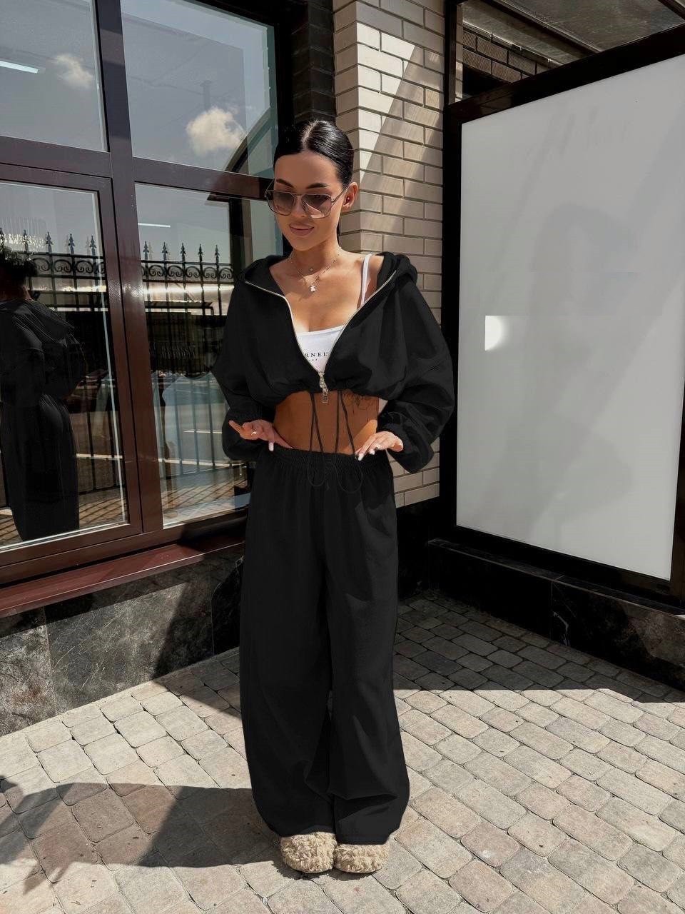 Костюм оверсайз (Худи на молнии и штаны-палаццо) двухнитка черный
