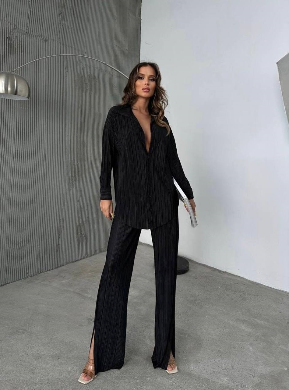 Костюм оверсайз из плиссированной ткани (рубашка+брюки) черный