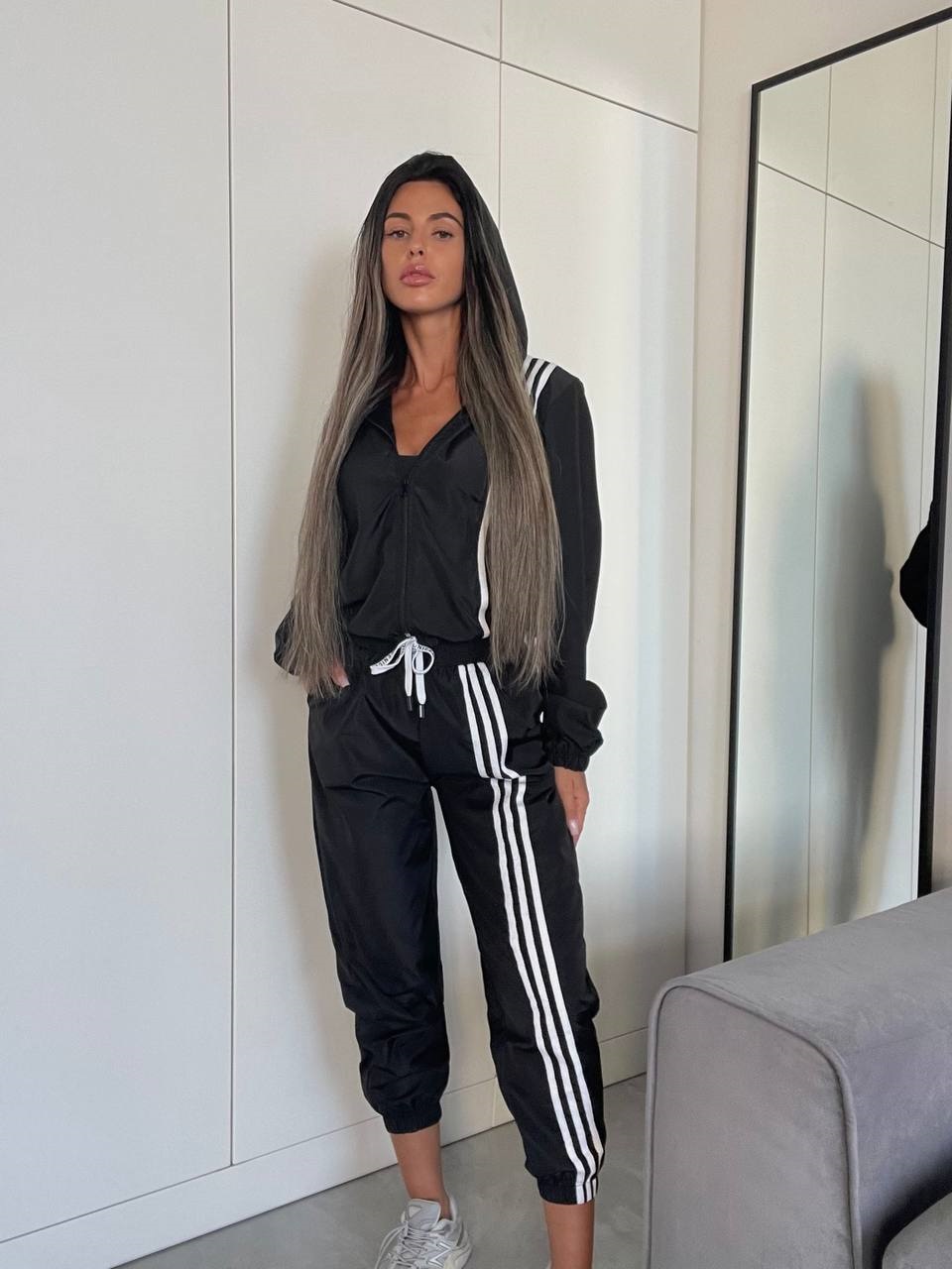 Головна » Магазин » ОДЕЖДА » ЖЕНСКИЕ КОСТЮМЫ » Костюм с лампасами ( ветровка на подкладке+брюки джоггеры) черный