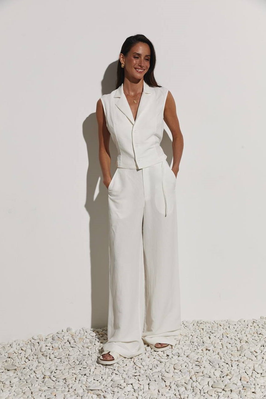 Костюм с укороченным жилетом и брюками палаццо белый
