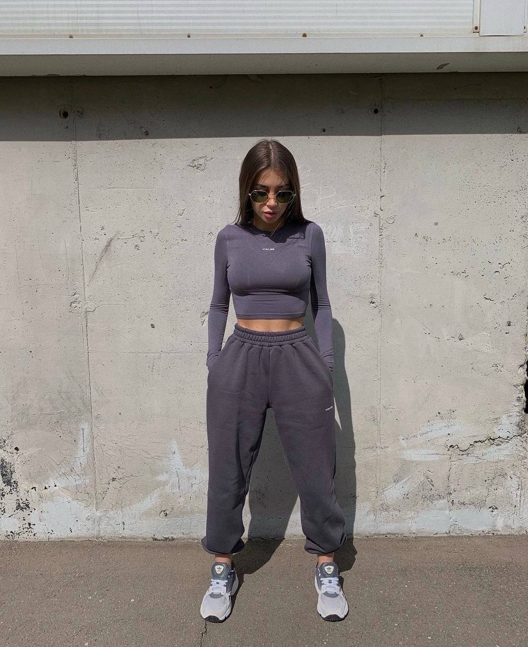 Костюм топ и джогеры оверсайз графит