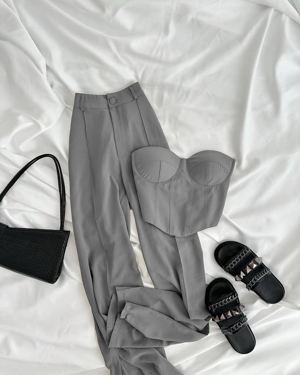 Костюм топ с имитацией корсета + брюки из плотной ткани