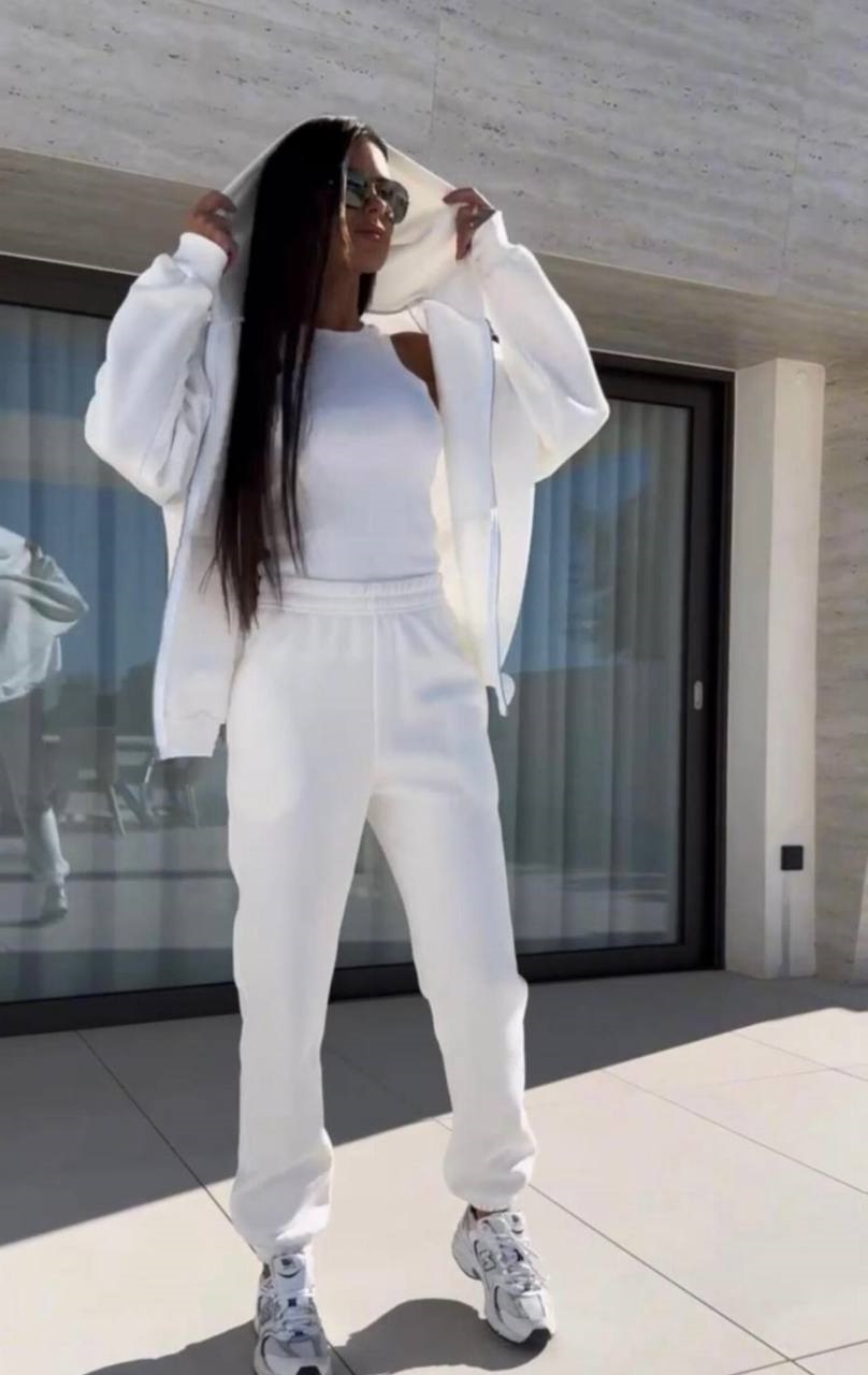Костюм-тройка (брюки+майка+кофта капюшон на молнии) молочный