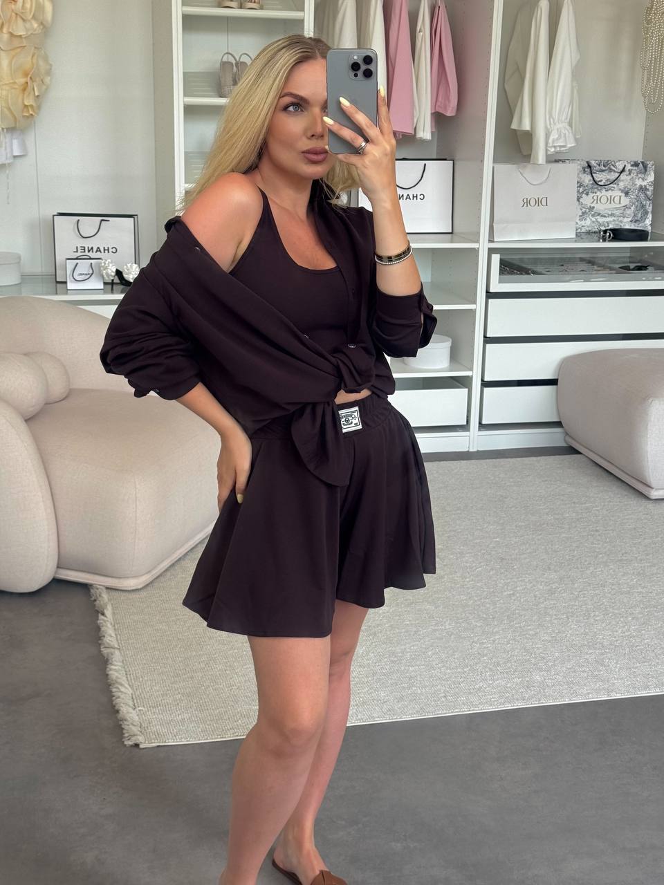 Костюм тройка (Рубашка+шорты+топ) двунитка шоколад
