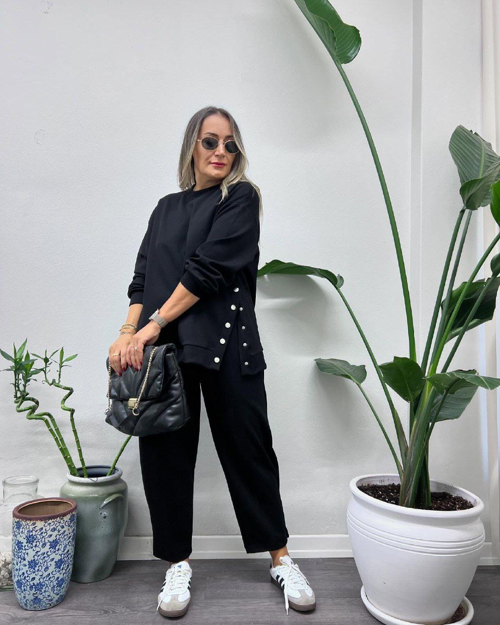 Стильный костюм, туника свободного кроя. Брюки на резинке, рабочие карманы. Трикотаж имеет растяжимость. Идеальный костюм на каждый день.