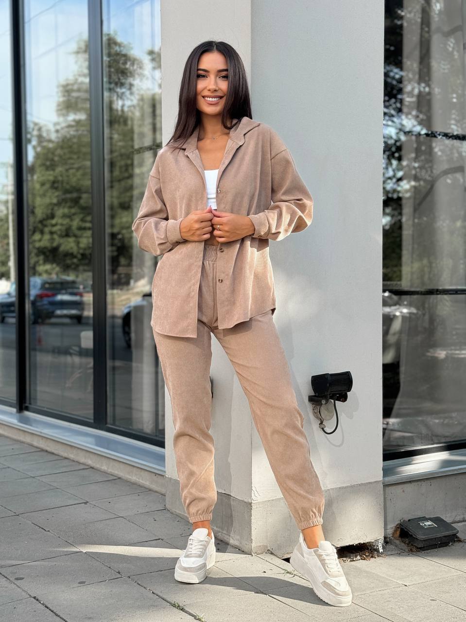 Костюм вельветовый рубашка на пуговицах+джогеры с карманами беж