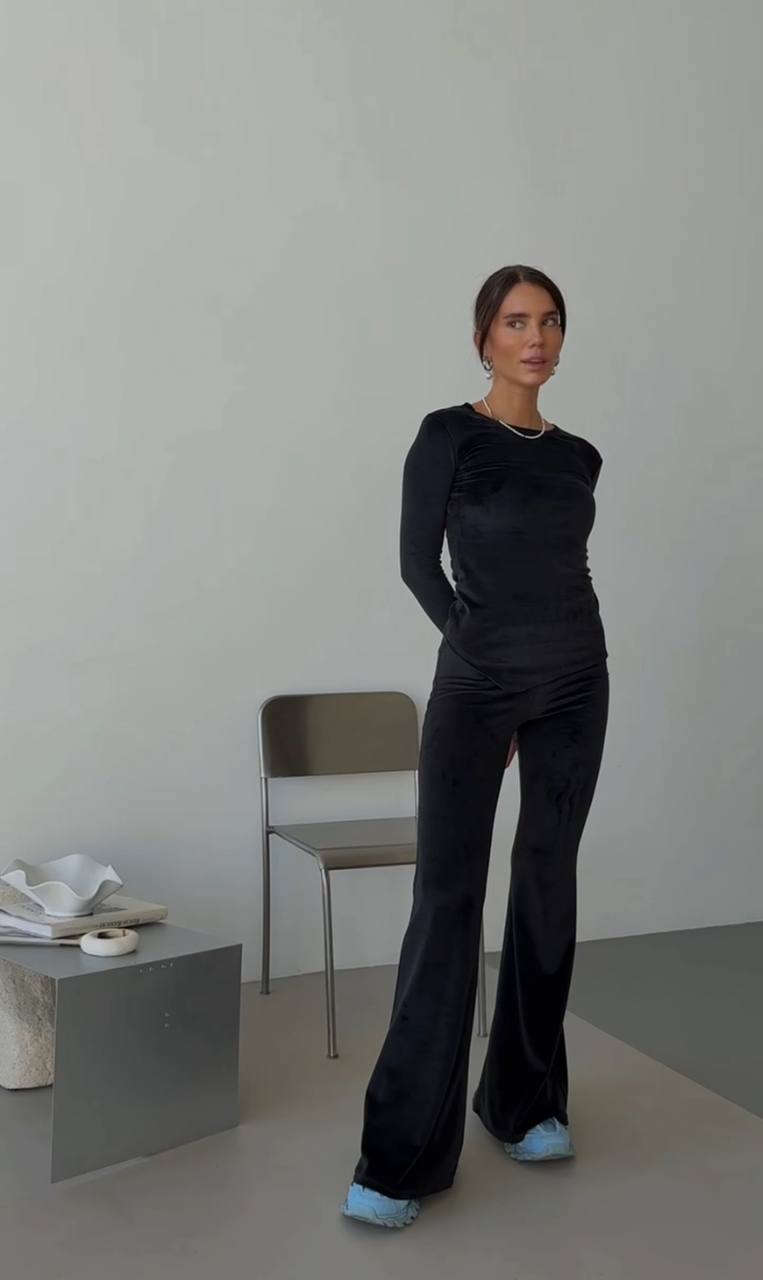 Костюм велюрово-плюшевый: кофта+брюки-клеш черный
