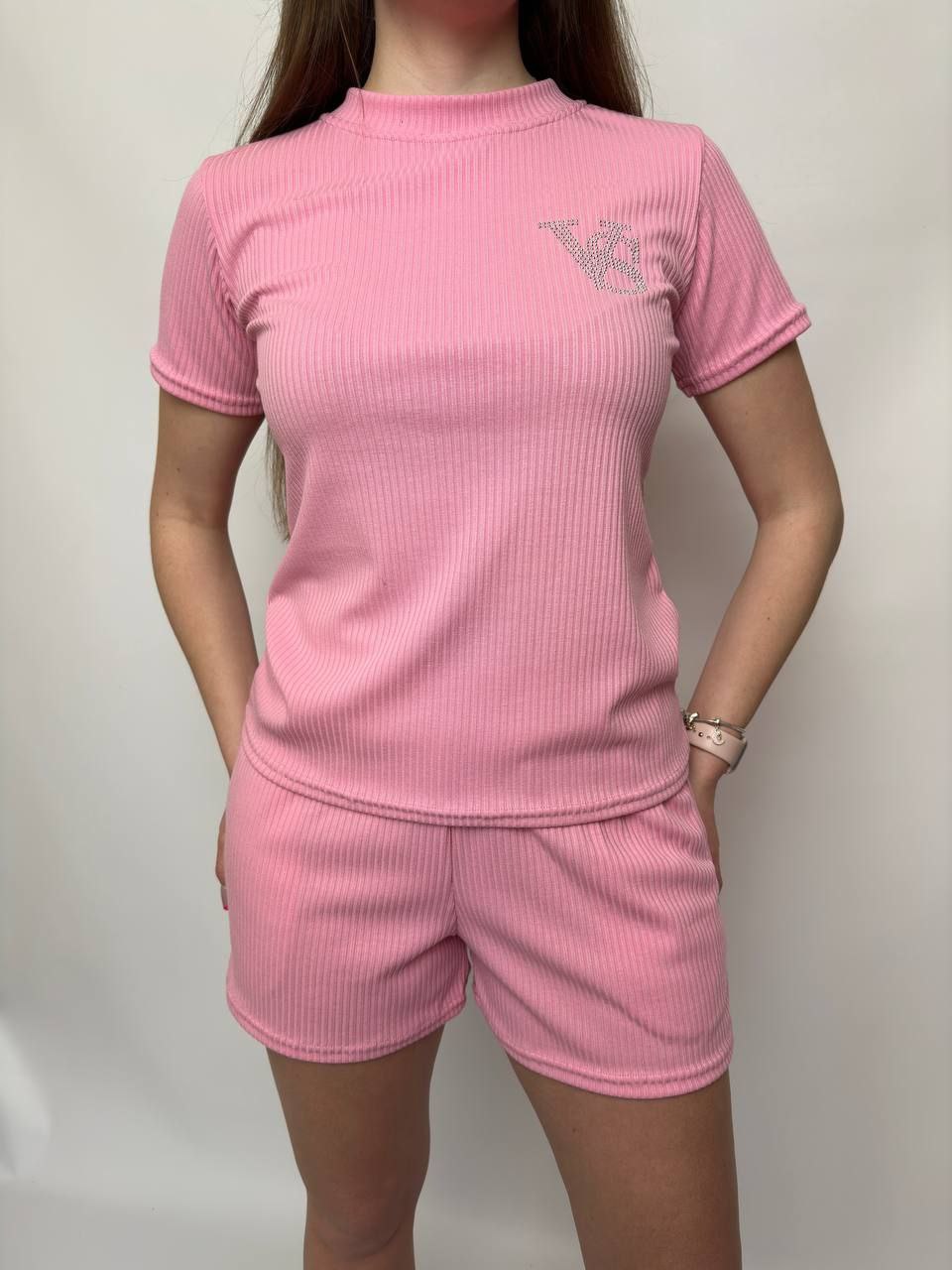 Костюм «VS» футболка+шорты трикотаж рубчик розовый