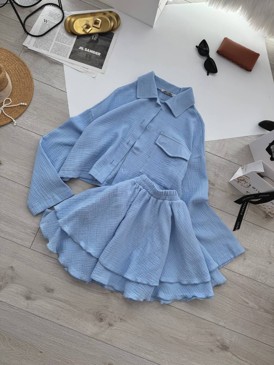 Костюм юбка и свободного кроя рубашка (Муслим) голубой