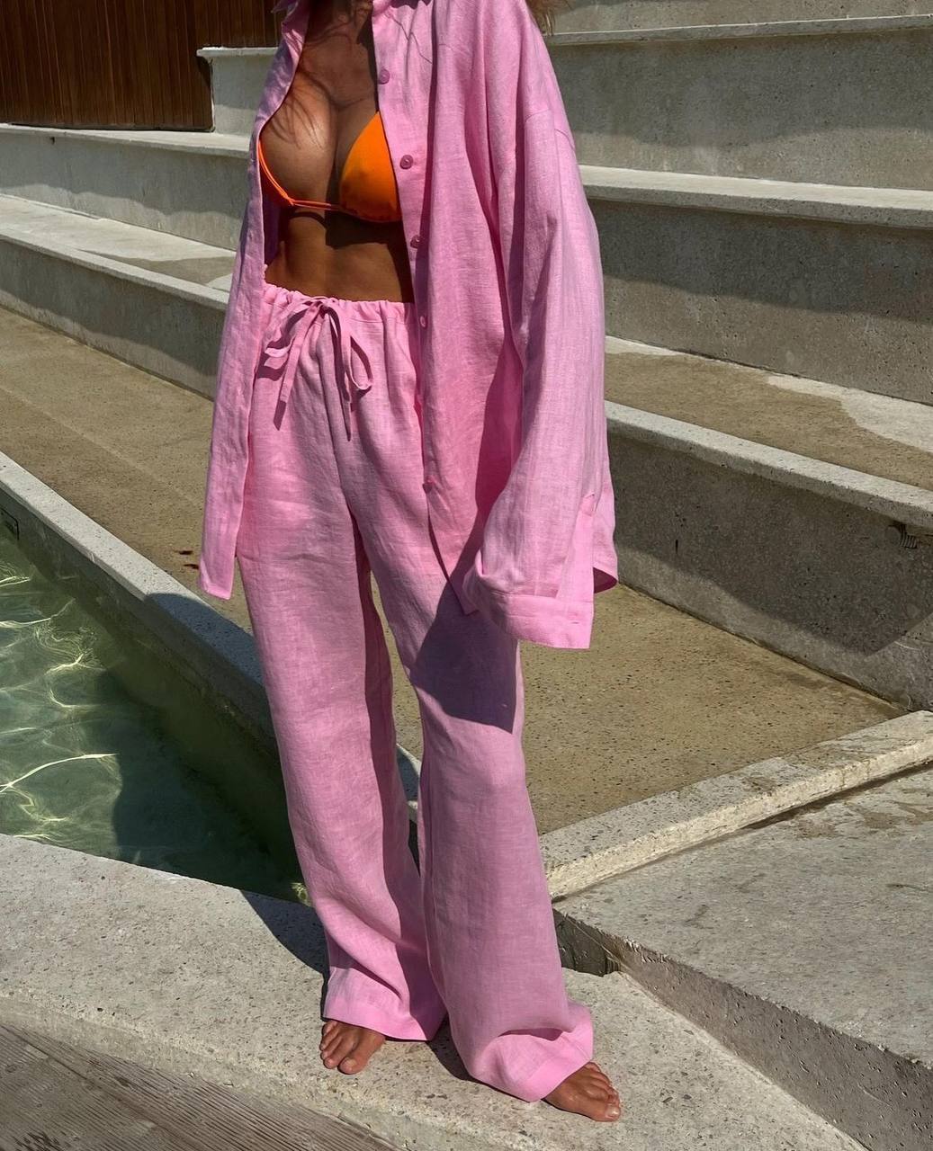 Головна » Магазин » ОДЕЖДА » ЖЕНСКИЕ КОСТЮМЫ » Костюмчик 2-ка: рубашка+штаны (лен) розовый