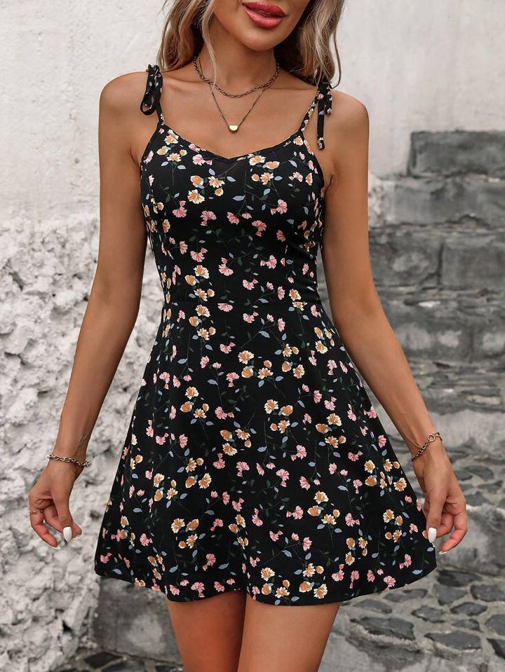 Головна » Магазин » ОДЕЖДА » ПЛАТЬЯ ТУНИКИ САРАФАНЫ » Красивое платье в цветочный принт на тонких бретелях черный