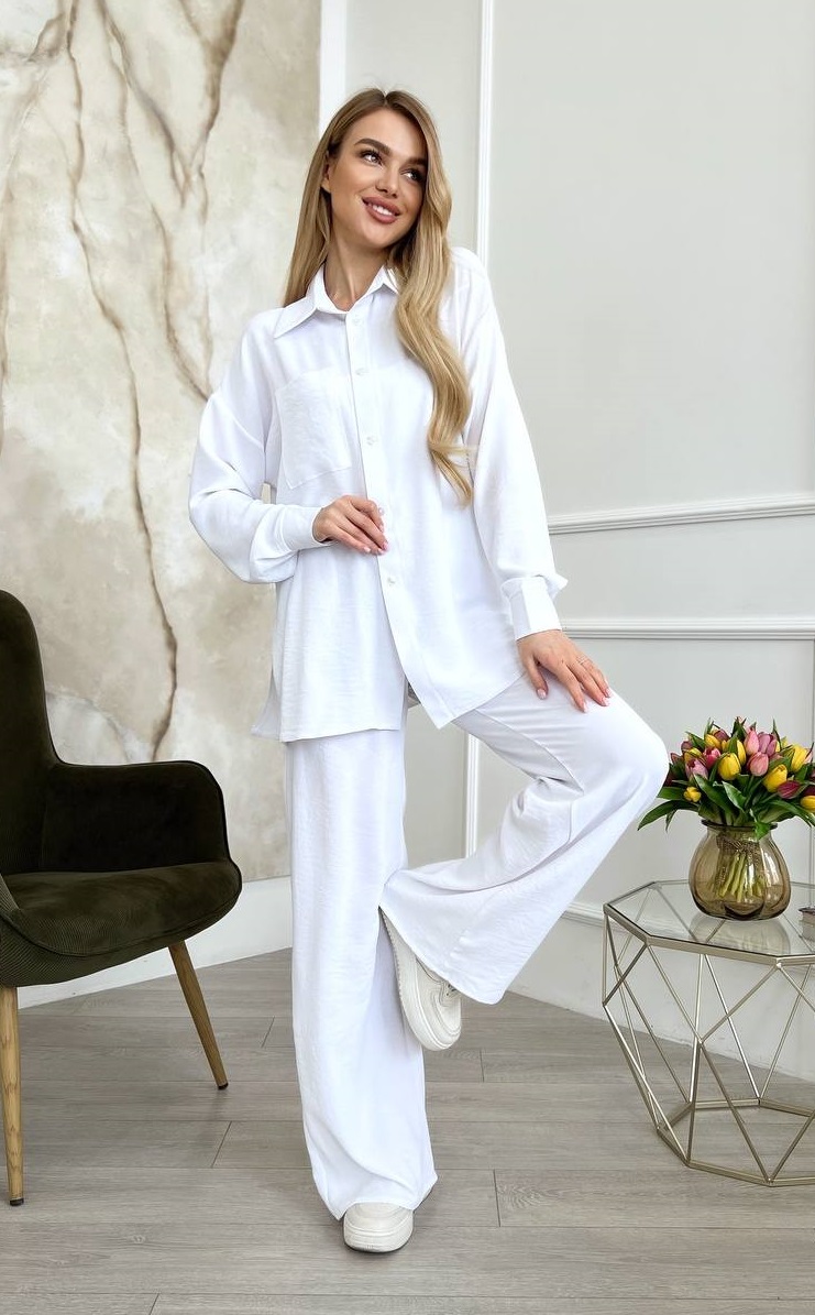 Красивый и очень удобный костюм рубашка + брюки жатка молочный