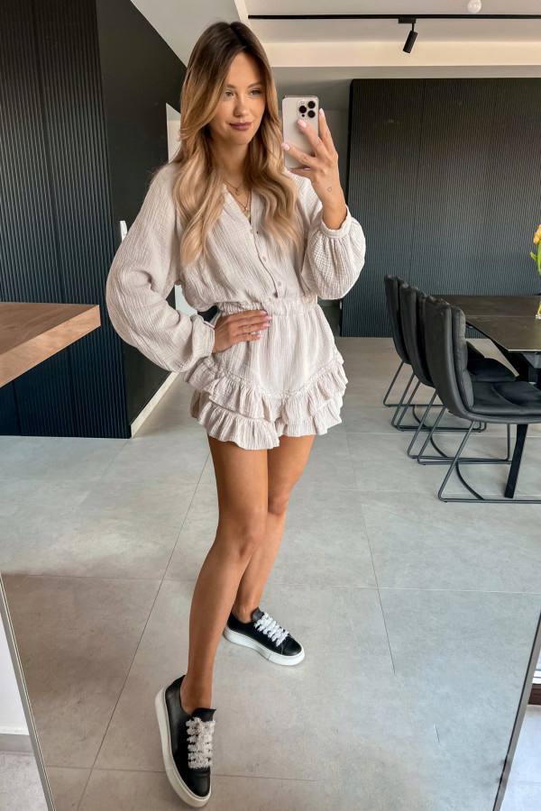 Головна » Магазин » ОДЕЖДА » ПЛАТЬЯ ТУНИКИ САРАФАНЫ » Красивый легкий комбинезон муслин молоко