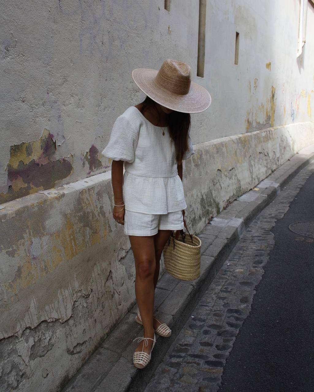 Красивый летний костюм из муслина (кофта с открытой спинкой+шорты) молочный
