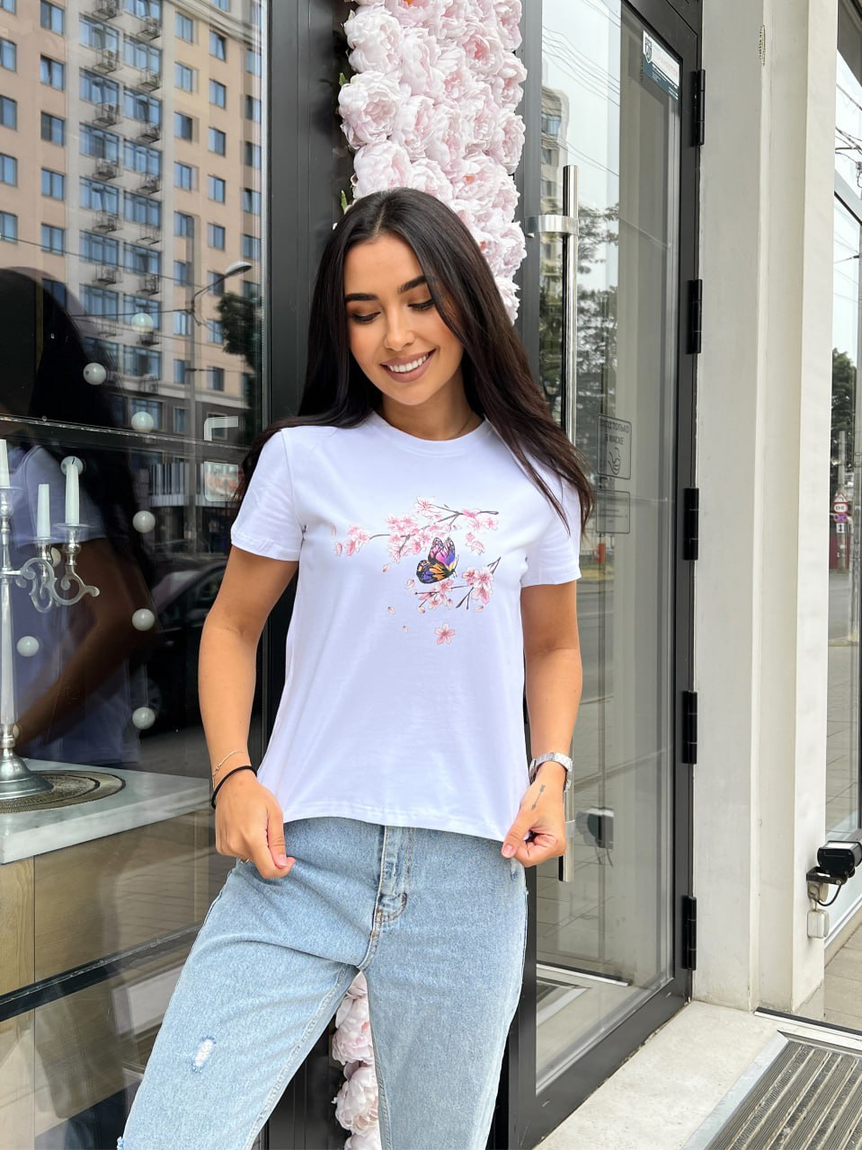 Головна » Магазин » ОДЕЖДА » ФУТБОЛКИ МАЙКИ » Крутая футболка сакура с бабочкой белый