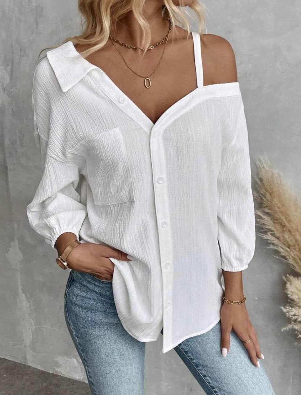 Легкая рубашка из муслина с открытым плечом на бретеле белый