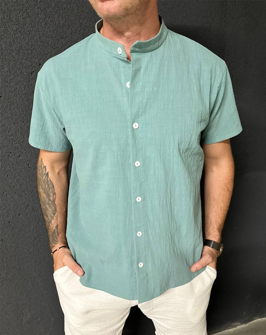 Будьте первым, кто оставил отзыв на “Легкая рубашка с коротким рукавом из натуральной ткани олива”