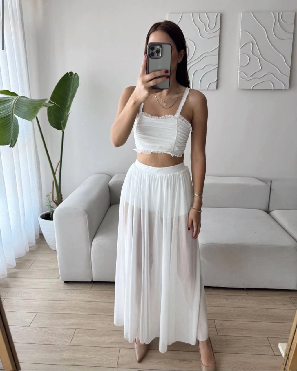Головна » Магазин » ОДЕЖДА » ЖЕНСКИЕ КОСТЮМЫ » Легкий костюм для жарких дней (топ на бретелях+юбка с шортиками) белый