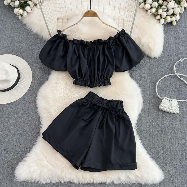 Легкий костюм-двойка (шорты с идеальной посадкой + стильный топ) черный