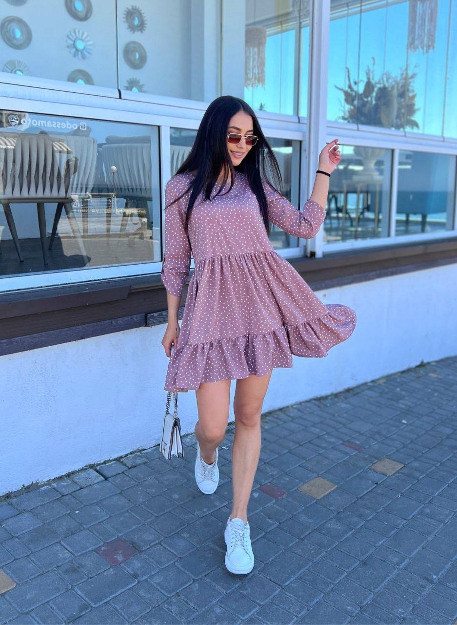 Головна » Магазин » ОДЕЖДА » ПЛАТЬЯ ТУНИКИ САРАФАНЫ » Легкое коротенькое нежное платье софт мокко