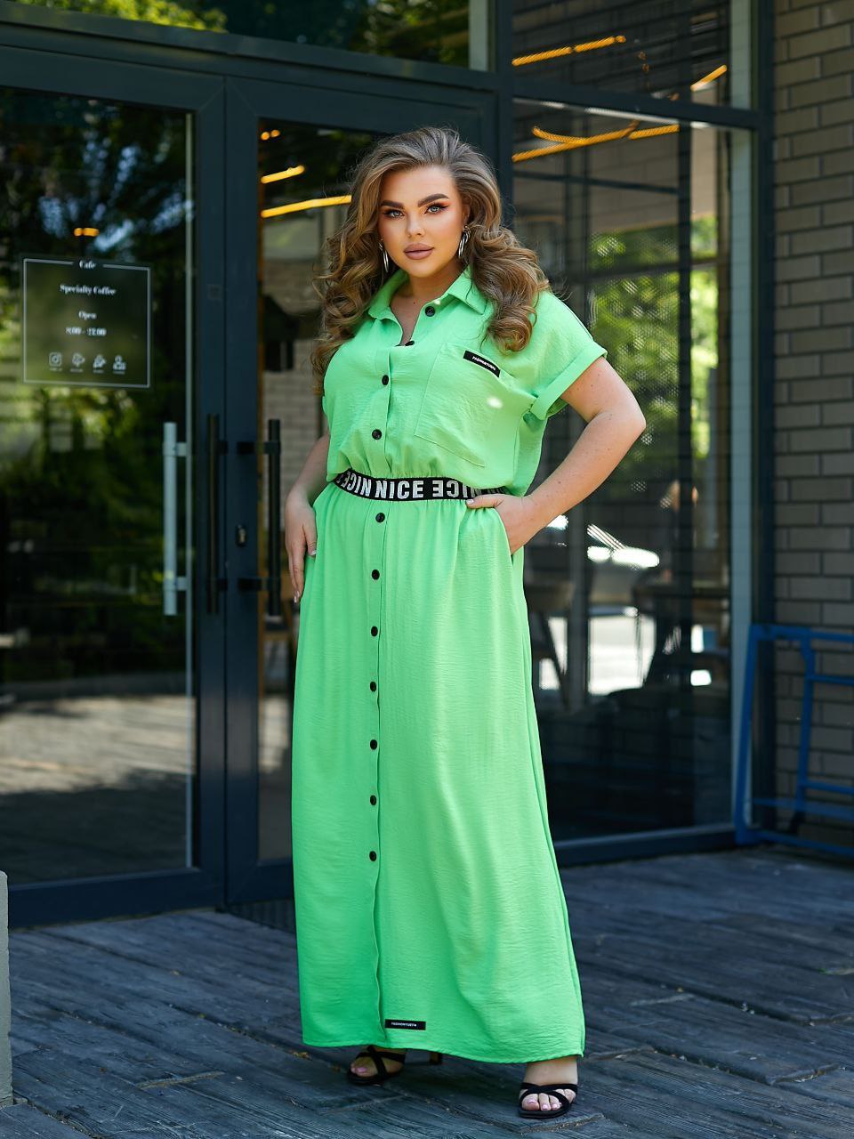Головна » Магазин » ОДЕЖДА » ПЛАТЬЯ ТУНИКИ САРАФАНЫ » Легкое летнее длинное платье с пуговицами (жатка) зеленый