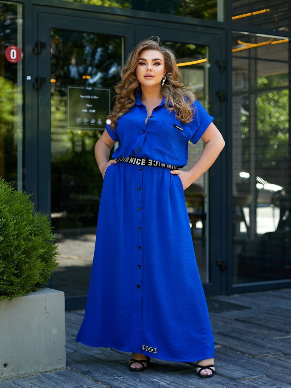 Головна » Магазин » ОДЕЖДА » ПЛАТЬЯ ТУНИКИ САРАФАНЫ » Легкое летнее длинное платье с пуговицами (жатка) синий
