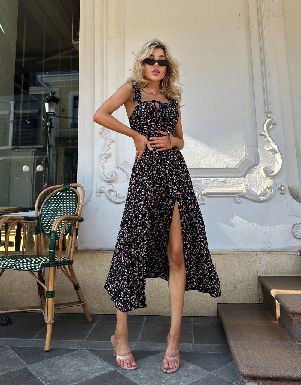 Легкое очень женственное платье из натуральной ткани Штапель Черный принт