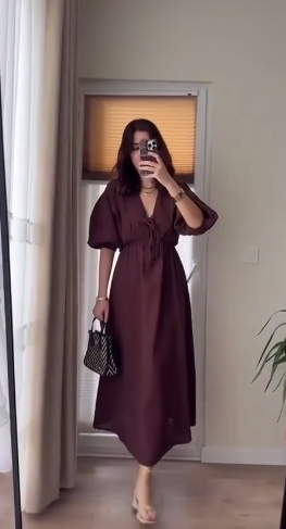 Головна » Магазин » ОДЕЖДА » ПЛАТЬЯ ТУНИКИ САРАФАНЫ » Легкое платье из муслина на пуговицах+талия завышена на резинке коричневый