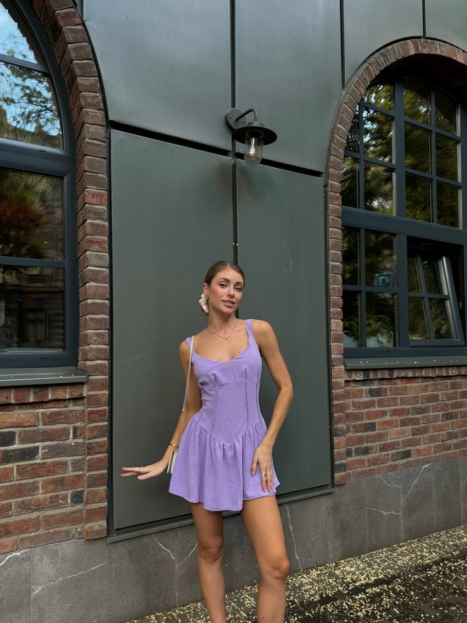 Легкое платье-комбинезон на бретелях с акцентной талией+шнуровкой по спинке лаванда