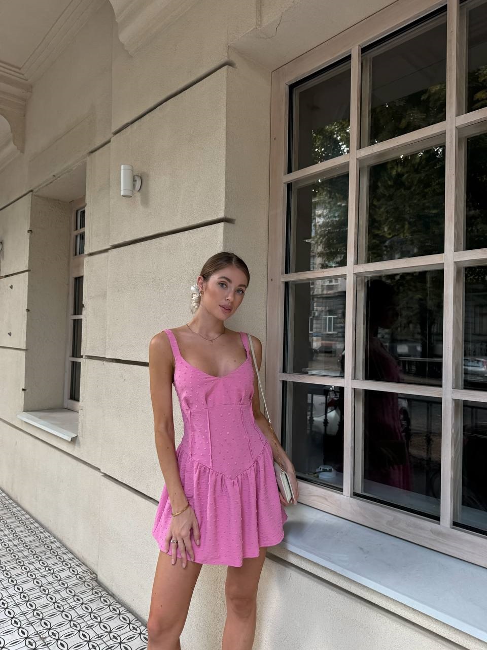 Легкое платье-комбинезон на бретелях с акцентной талией+шнуровкой по спинке розовый