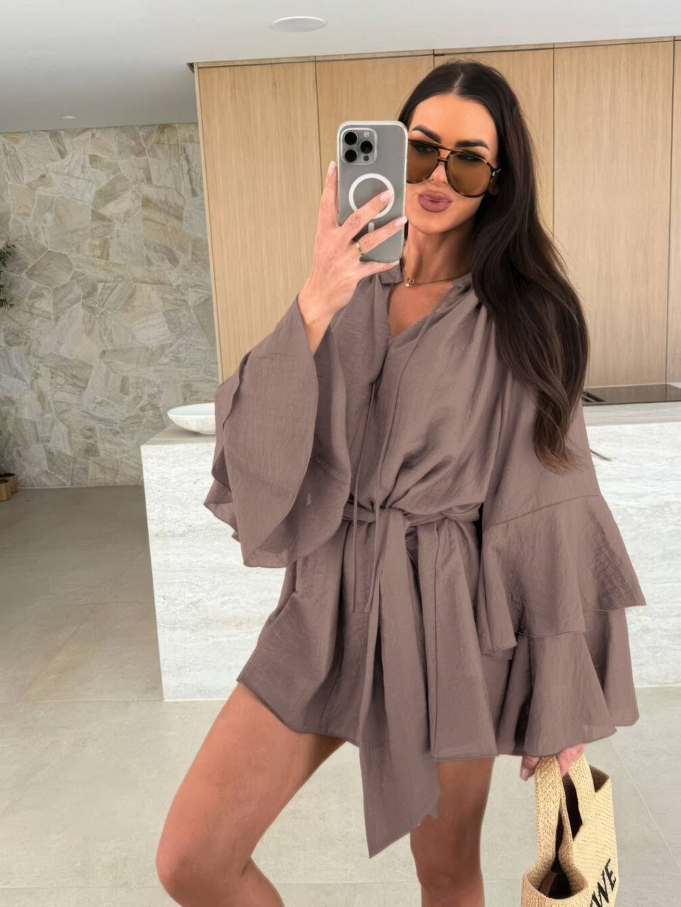 ✨Легкое платье oversize с рукавами-воланами и поясом на талии