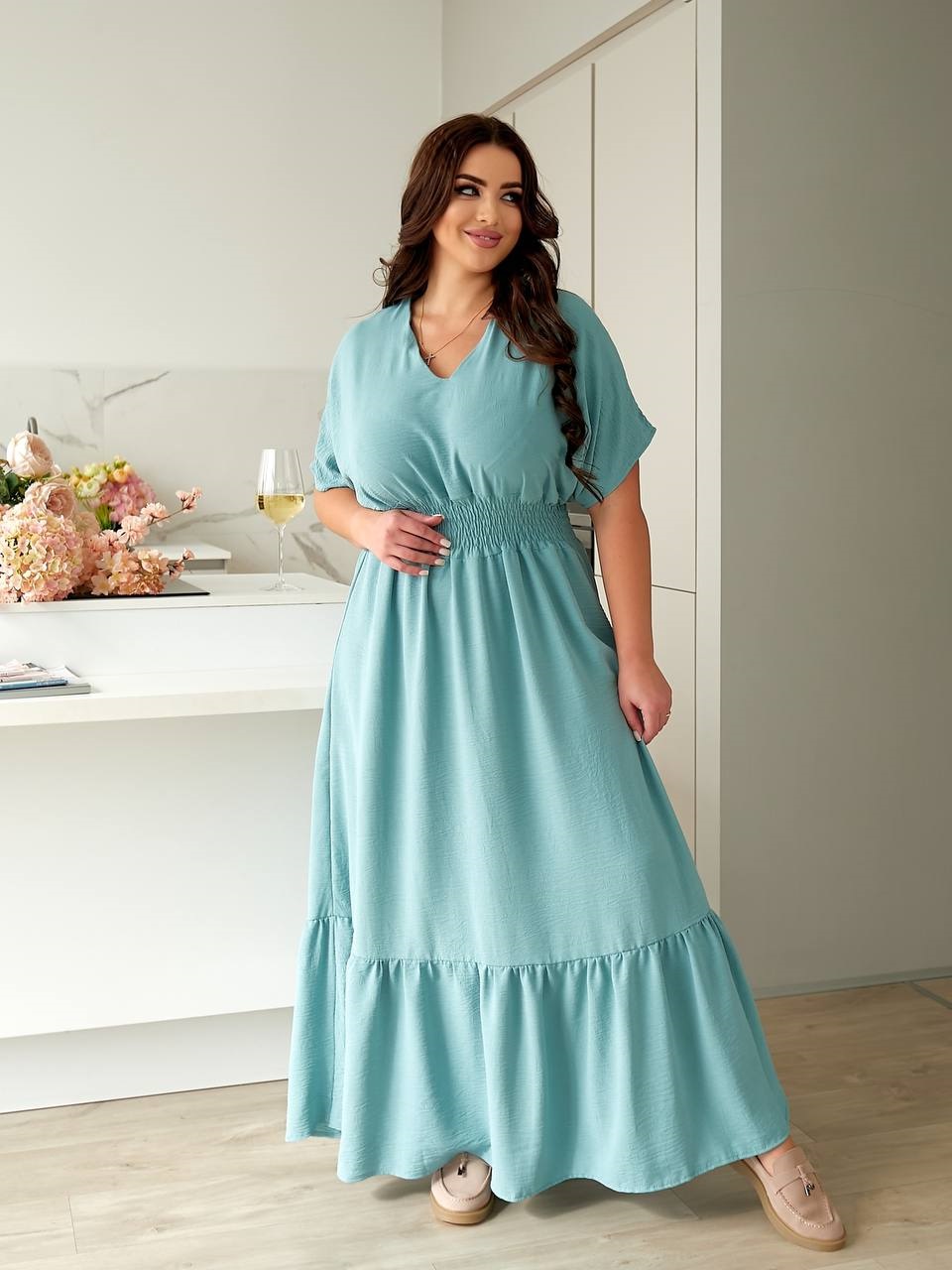 Легкое Платье с расклешенной юбкой+воланом по низу+по талии резинка мята