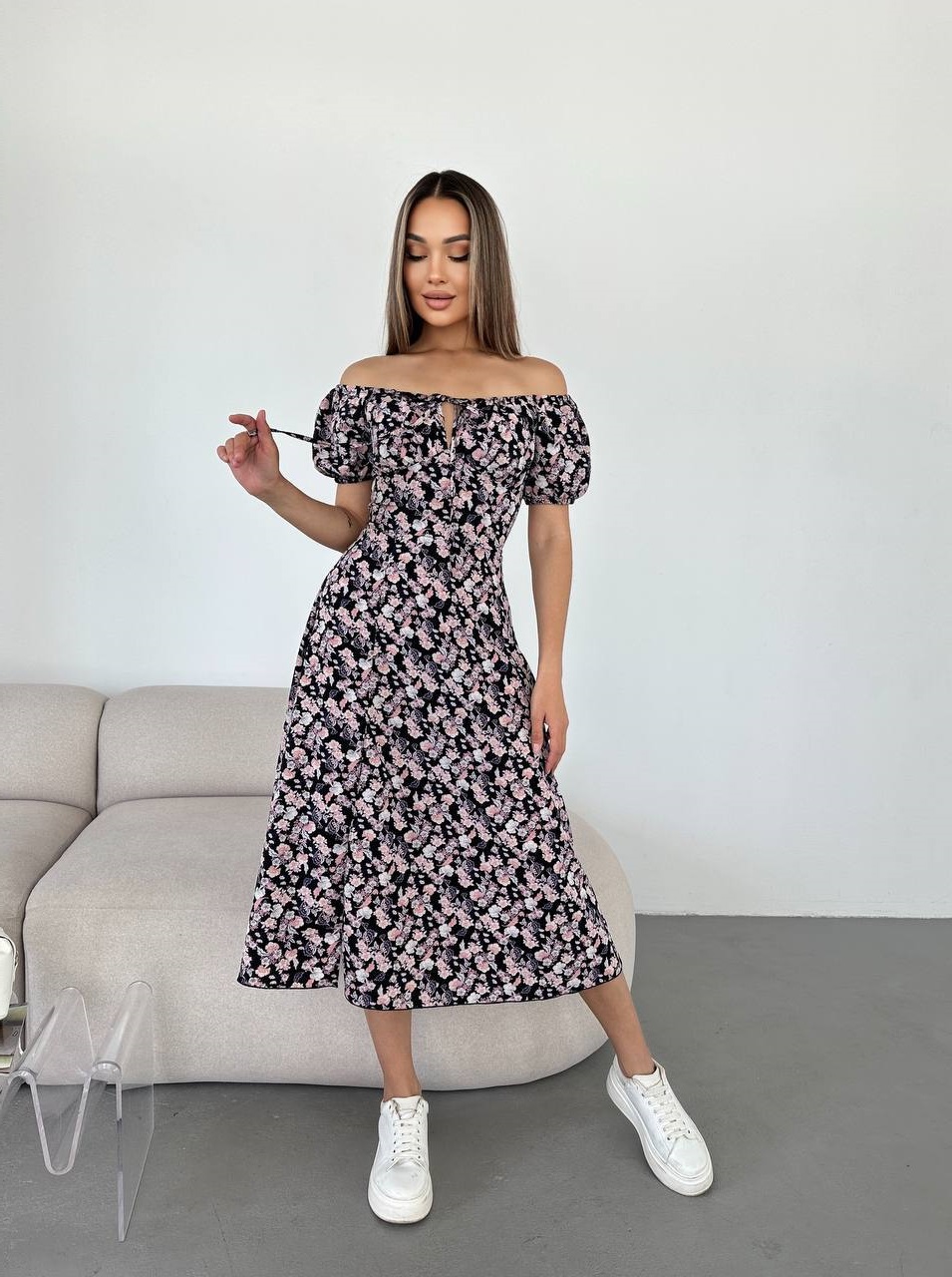 Головна » Магазин » ОДЕЖДА » ПЛАТЬЯ ТУНИКИ САРАФАНЫ » Летнее Платье приталенного силуэта со шнуровкой по спинке черный в цветочки