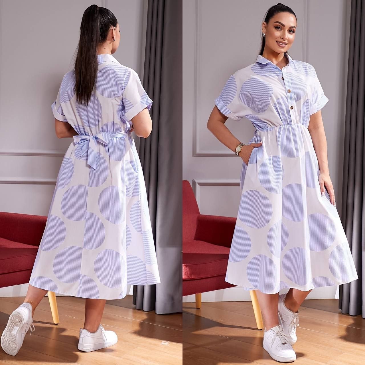 Будьте первым, кто оставил отзыв на “Летнее платье с карманами+по талии кулиска с резинкой длиной миди принт кружки голубой”