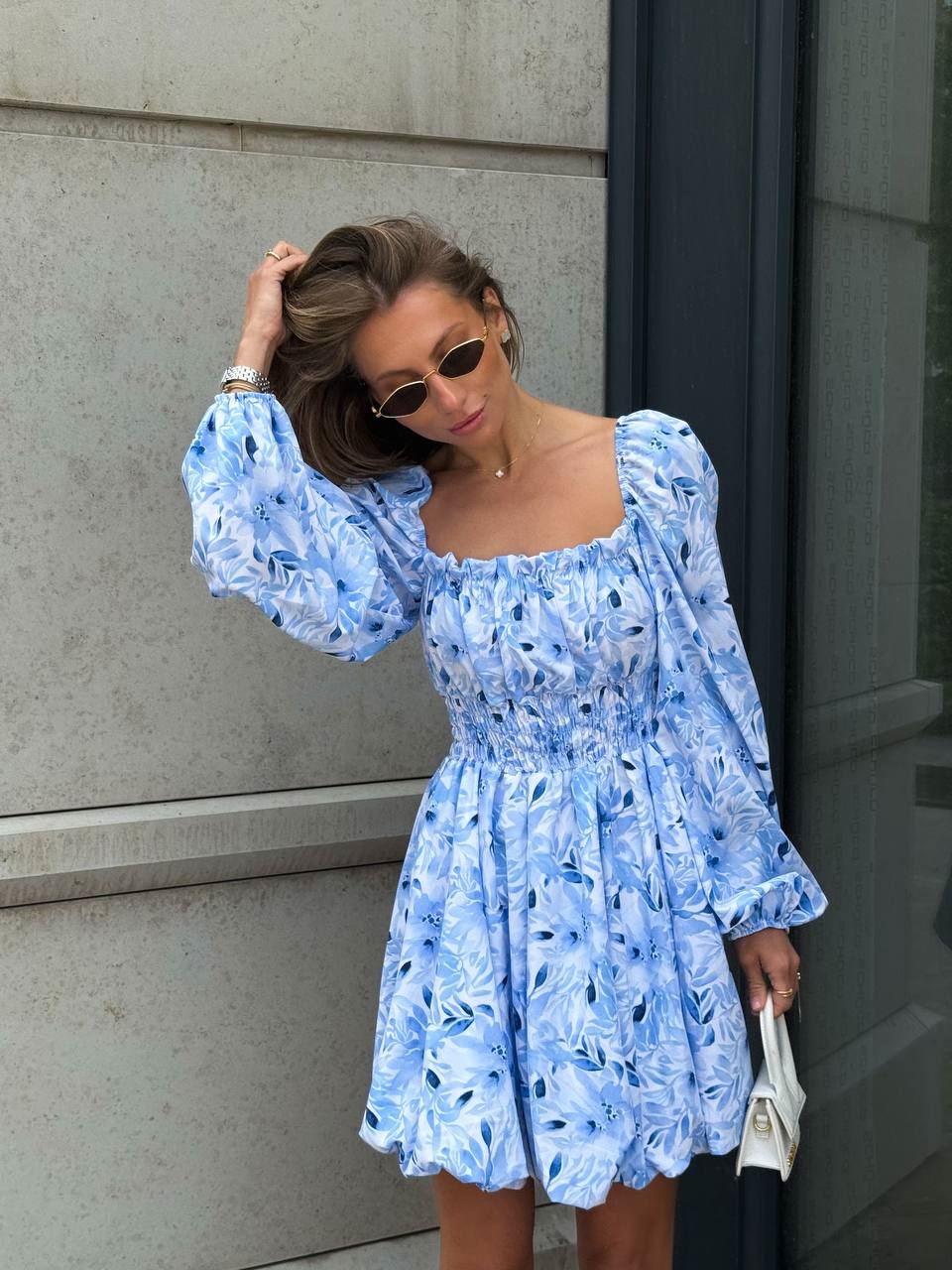 Головна » Магазин » ОДЕЖДА » ПЛАТЬЯ ТУНИКИ САРАФАНЫ » Летнее платье с расклешенной юбкой+по талии резинка принт акварель голубой