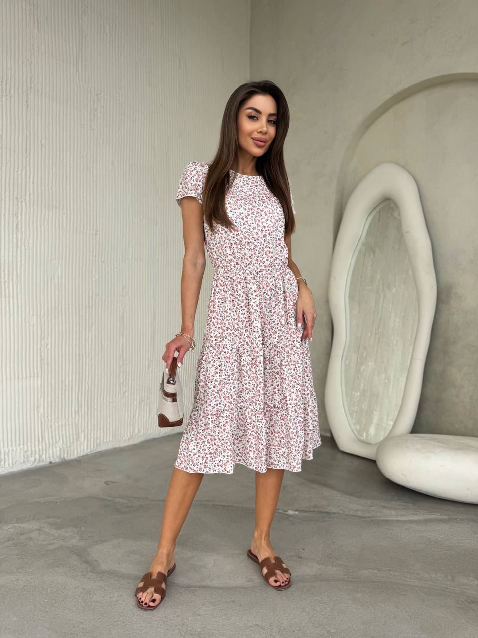 Летнее платье в цветочный принт (штапель) белый в розовый цветок
