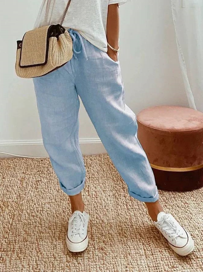 Головна » Магазин » ОДЕЖДА » ЖЕНСКИЕ ШТАНЫ ДЖИНСЫ БРЮКИ ЛОСИНЫ » Летние льняные брюки голубой