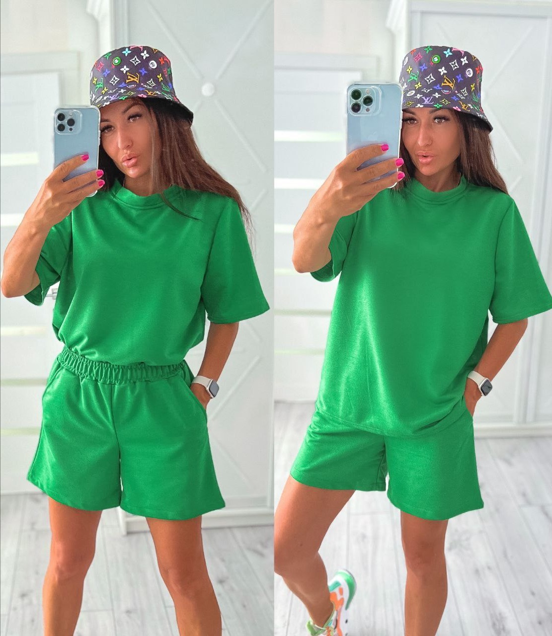 Летний костюм футболка и шорты двунитка зеленый