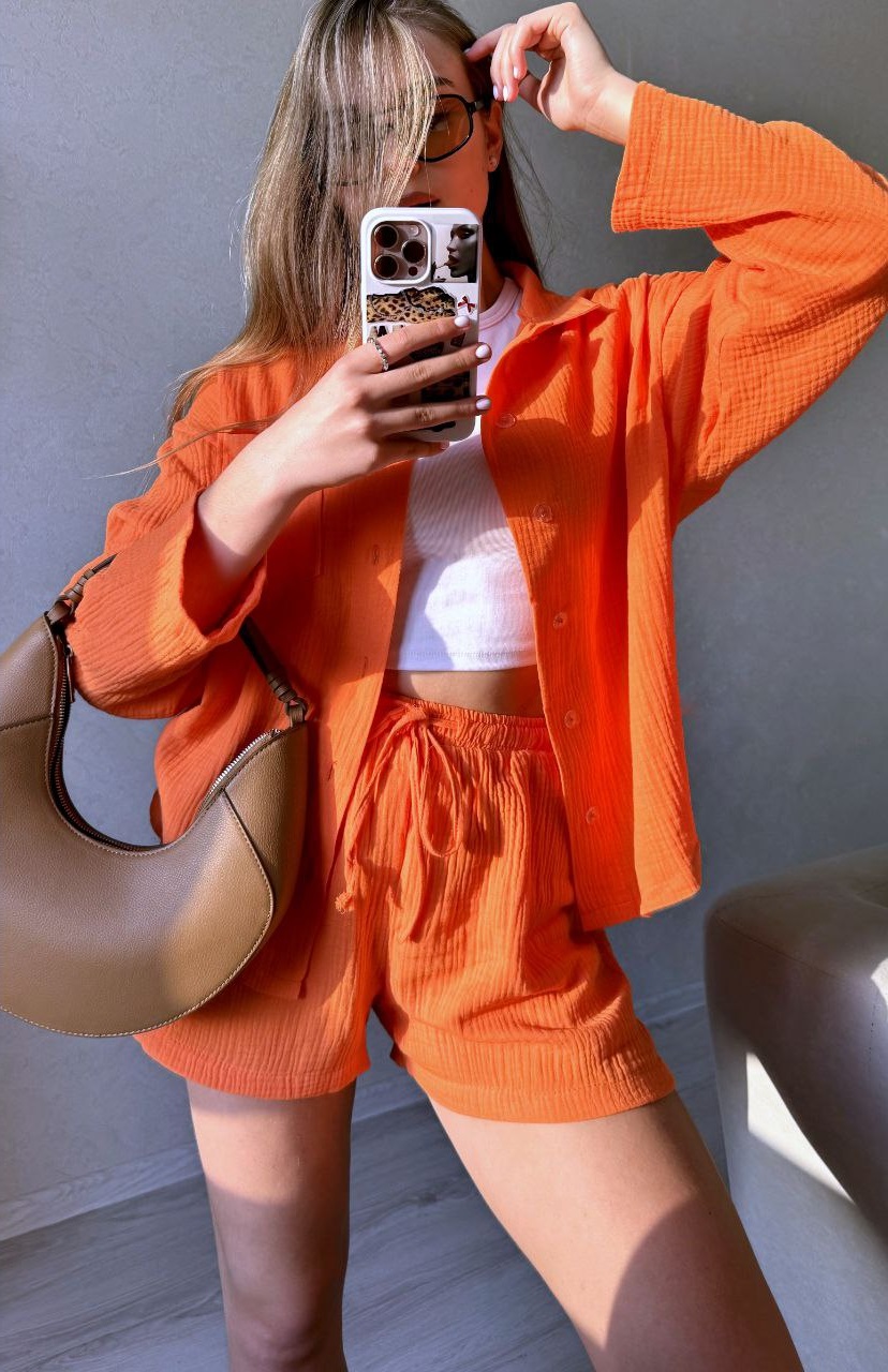 Летний костюм из муслина (шорты+рубашка с длинным рукавом) апельсин