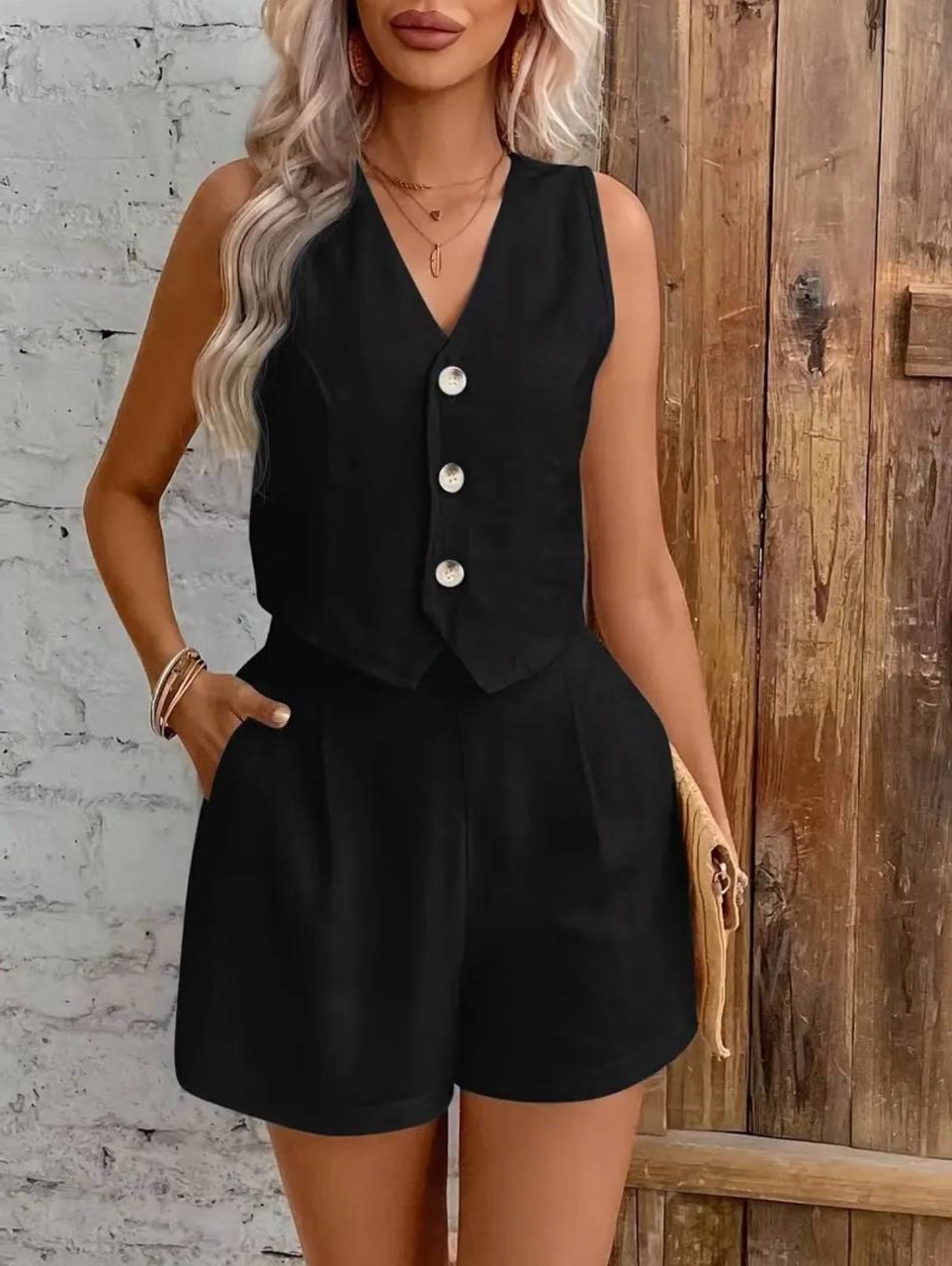 Головна » Магазин » ОДЕЖДА » ЖЕНСКИЕ КОСТЮМЫ » Летний костюм (шорты свободного кроя с карманами+жилет) черный