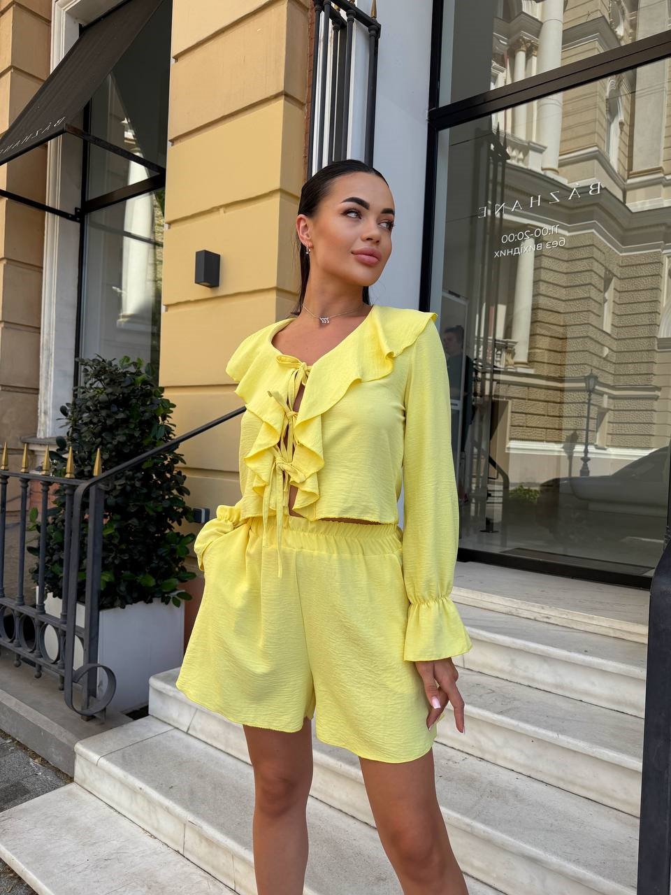 Летний костюм (шорты+блуза с воланами на завязочках) желтый