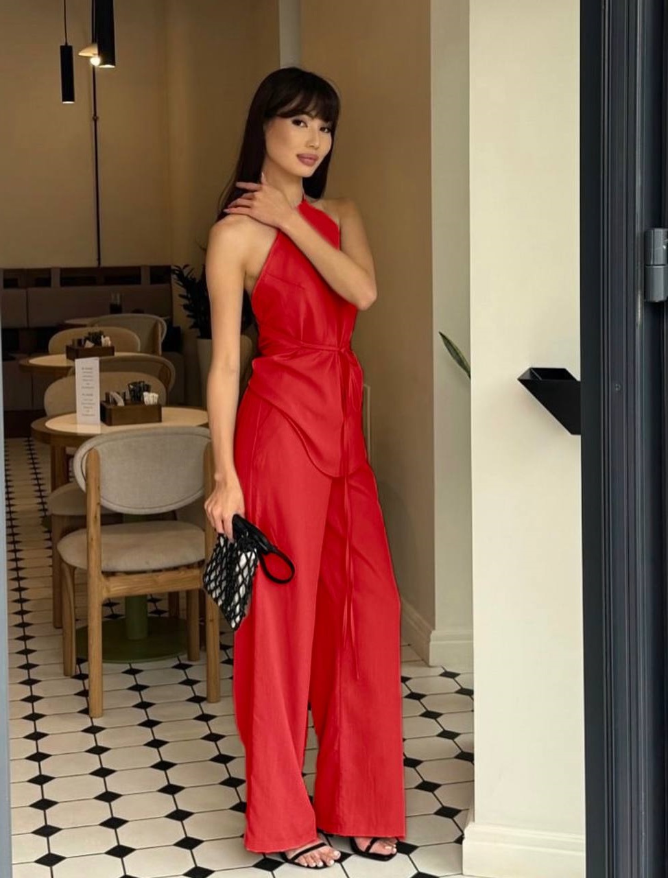 Будьте первым, кто оставил отзыв на “Летний костюм (топ с открытой спинкой и завязками на шее+свободные брюки) красный”