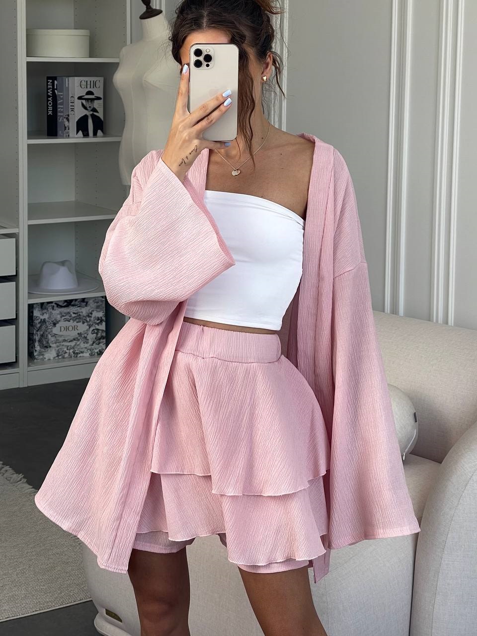 Удлиненный кимоно оверсайз. Шорты юбка. Пояс в комплекте.