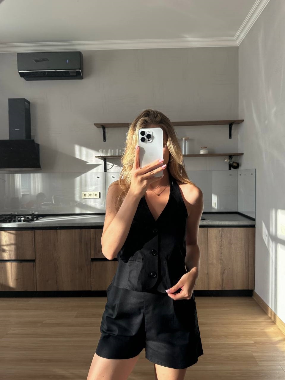 Будьте первым, кто оставил отзыв на “Летний Костюм (жилетка+шорты) лен черный”